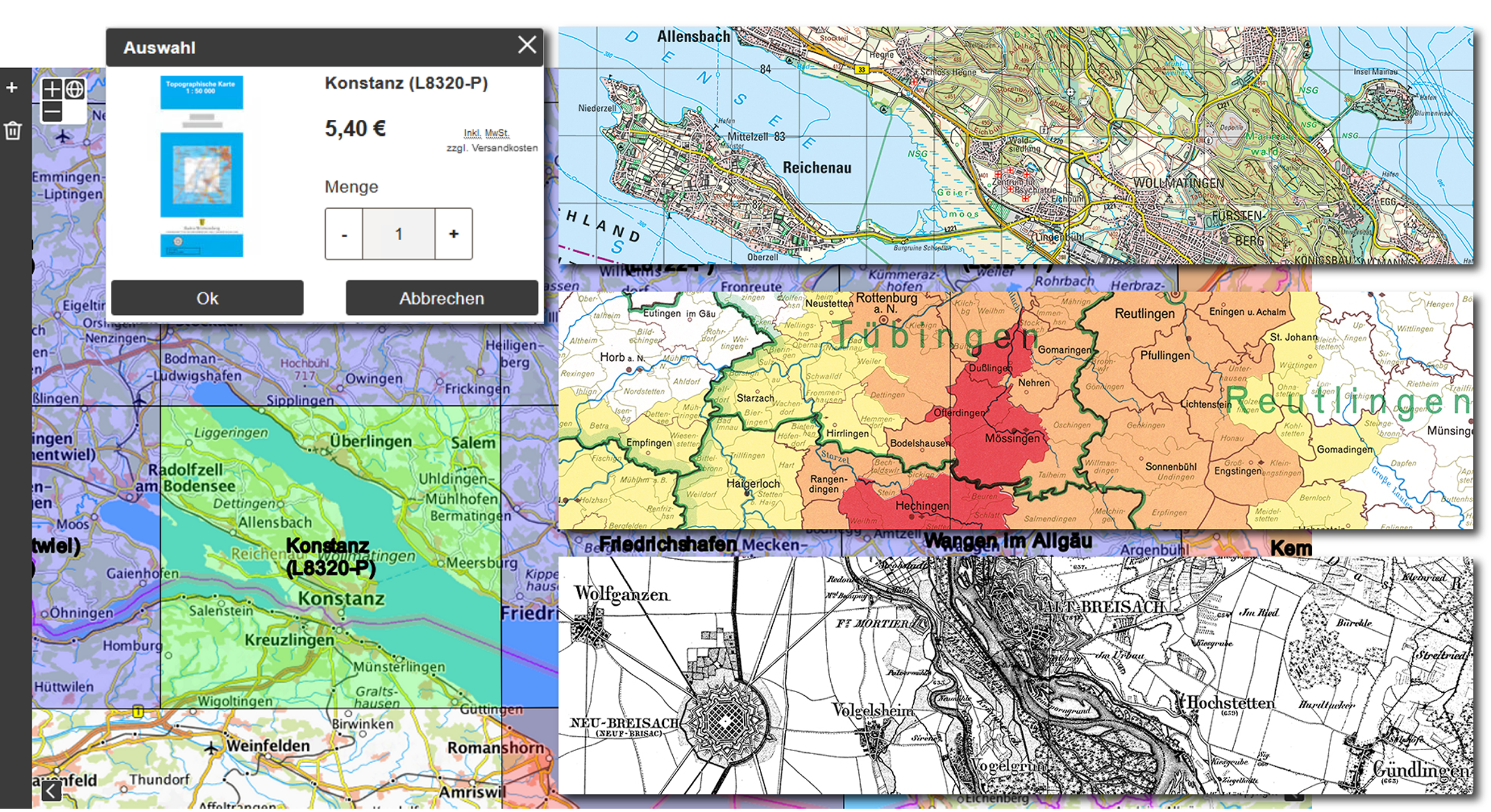 Unser neuer Kartenshop zeigt das umfangreiche Kartenangebote auf sehr anschauliche Weise. Die Produkte sind thematisch gruppiert und zu jedem Produkt gibt es einen visuellen Kartenausschnitt. Die Benutzerführung ist modern und intuitiv, so dass Sie alles im Überblick haben und Ihr Produkt finden können. Produkte bestellen – große Auswahl